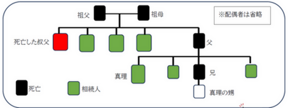 真理ちゃんの父は叔父の兄弟なので、その子どもの真理ちゃんが相続人になります。
